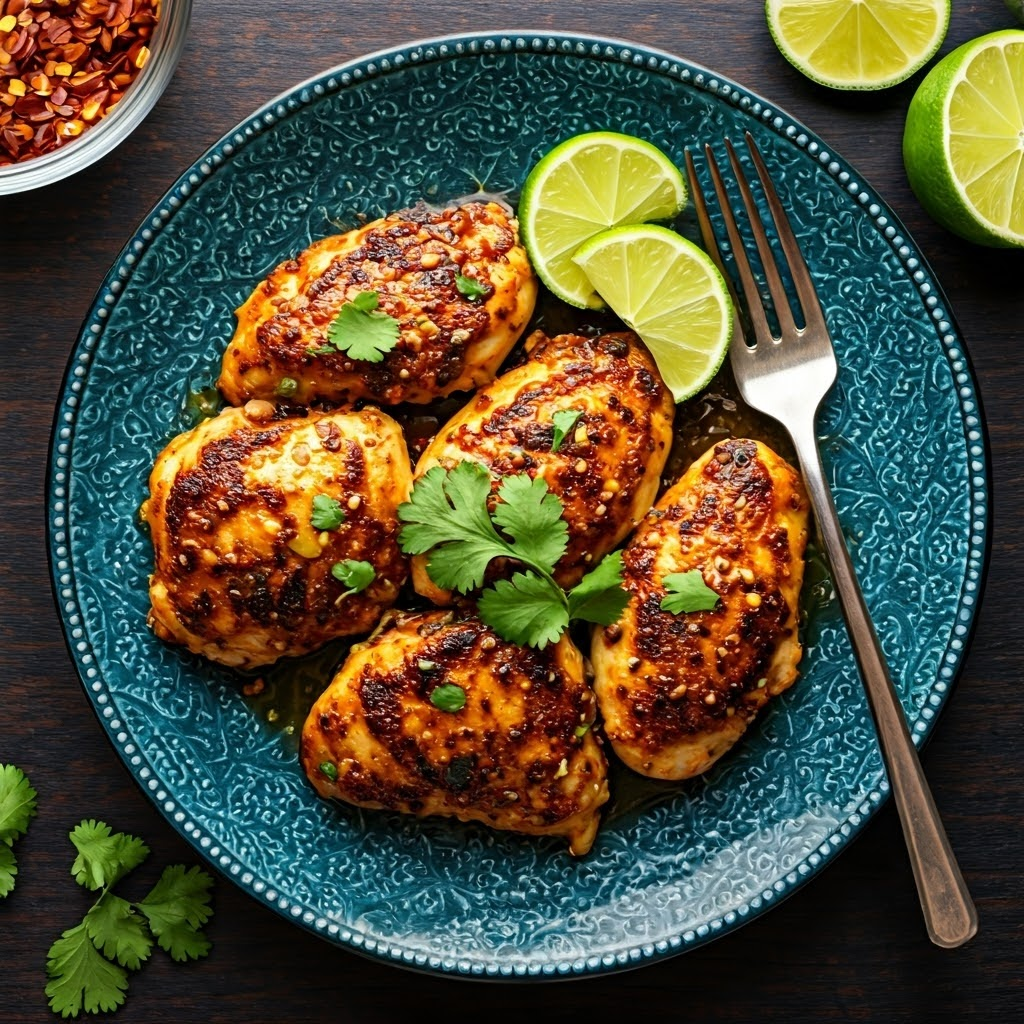 A fiery and flavorful chicken dish with a unique blend of spices and textures.